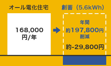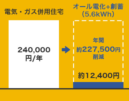 蓄電池と太陽光発電とオール電化住宅にすれば、年間で約22万7千円の削減。※3